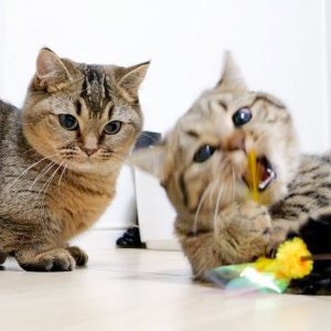 La hermana gata Kiki está abrumada por el poder de su hermana gata