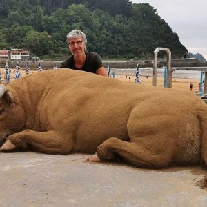 Un artista de arena crea esculturas de animales realistas con una asombrosa atención al detalle.
