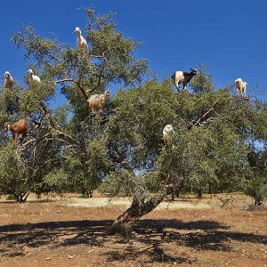 La cabra trepadora de árboles marroquí, una especie única que desafía la gravedad con una asombrosa habilidad para trepar árboles verticales. Maravíllate con su agilidad y destreza mientras se mueve con gracia a través de las ramas de los árboles, aprovechando su habilidad natural para buscar comida en lugares inaccesibles para otras especies. Esta cabra en particular nos enseña el poder de adaptación y la belleza de la diversidad en el reino animal.