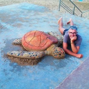 A sand artist creates lifelike animal sculptures with astonishing attention to detail
