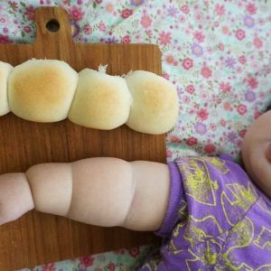 Les mains potelées de l’adorable bébé ressemblent à une miche de pain, ravissant beaucoup