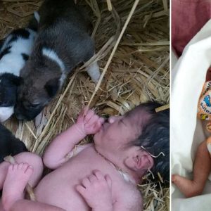 Un bébé abandonné trouve chaleur et protection en compagnie de chiots pendant la nuit