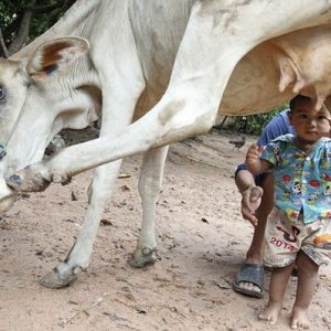 Une mère vache bienveillante fournit du lait vital à un garçon de 18 mois abandonné dans le village de Nokor Pheas. li – LifeAnimal