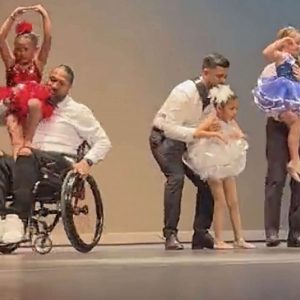 Performance réconfortante : un père en fauteuil roulant danse avec sa fille sur scène, captivant le cœur des téléspectateurs