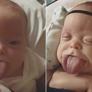 Baby Ƅoɾn wiTҺ an unusᴜɑlly lɑrge tongue can finaƖly smiƖe q.