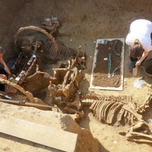 These images show a Roman chariot complete with the fossilised remains of horses which archaeologists have found as part of a burial ritual for “extremely wealthy families”. Archaeologists from the…