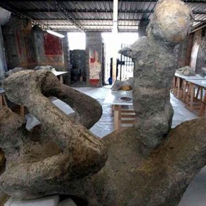 Archaeologist Holds Plaster cast of Child Victim from Pompeiiβs Vesuvius Eruption β