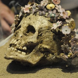 The skull of an Ancient Greek girl with a ceramic flower wreath has been discovered. These remains have been dated circa 400 to 300 B.C. This skull currently resides in…